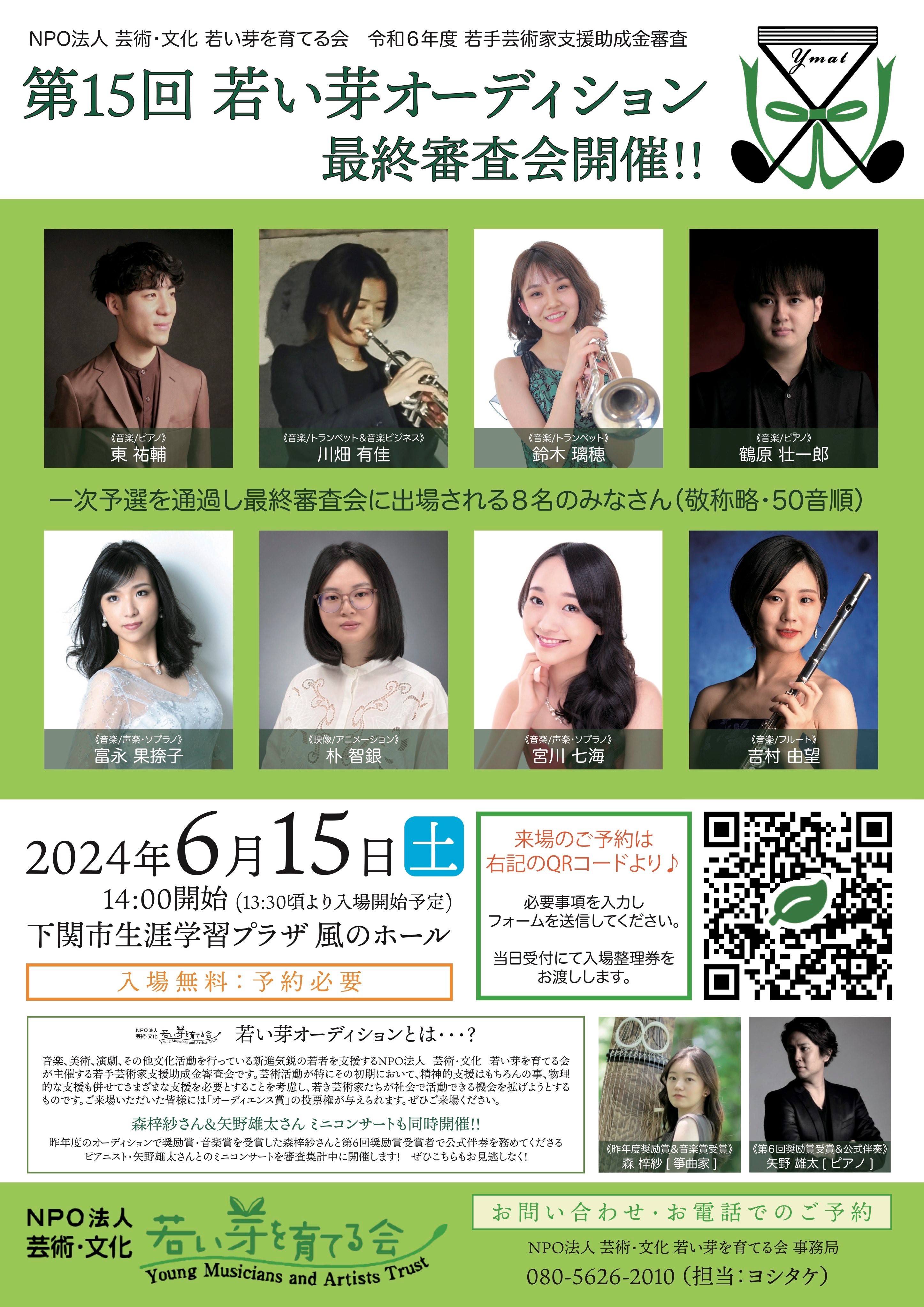 第15回 若い芽オーディション(R6年度助成金) 最終審査会出場者発表