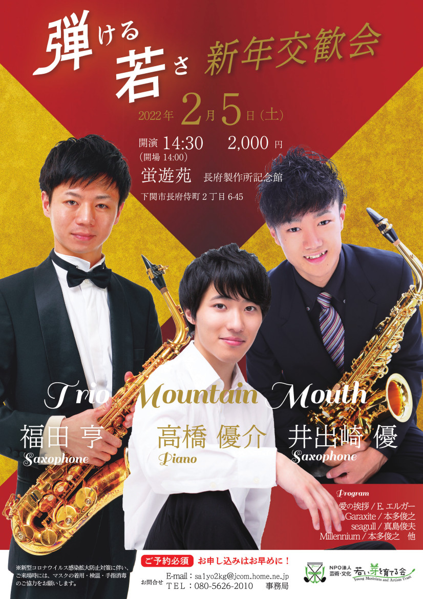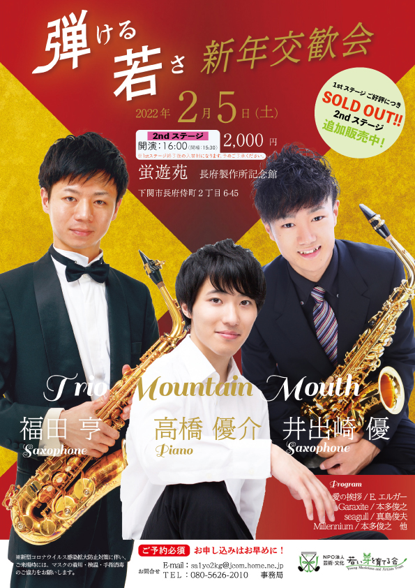 - 当法人協力による 下関市立美術館での8月17日No183ギャラリーコンサートに「若い芽サクソフォンカルテット」が出演いたします。高校生以下は、無料です。アートとサックスをお楽しみください。